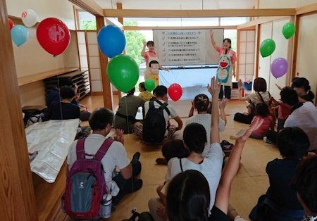 エプロンシアターは色とりどりの風船を手にした親子が集まり、楽しい雰囲気に包まれていました。むし歯予防のための食生活やフッ化物についてクイズ形式で楽しく学びました。また、バイオリンコンサートも素敵でした。