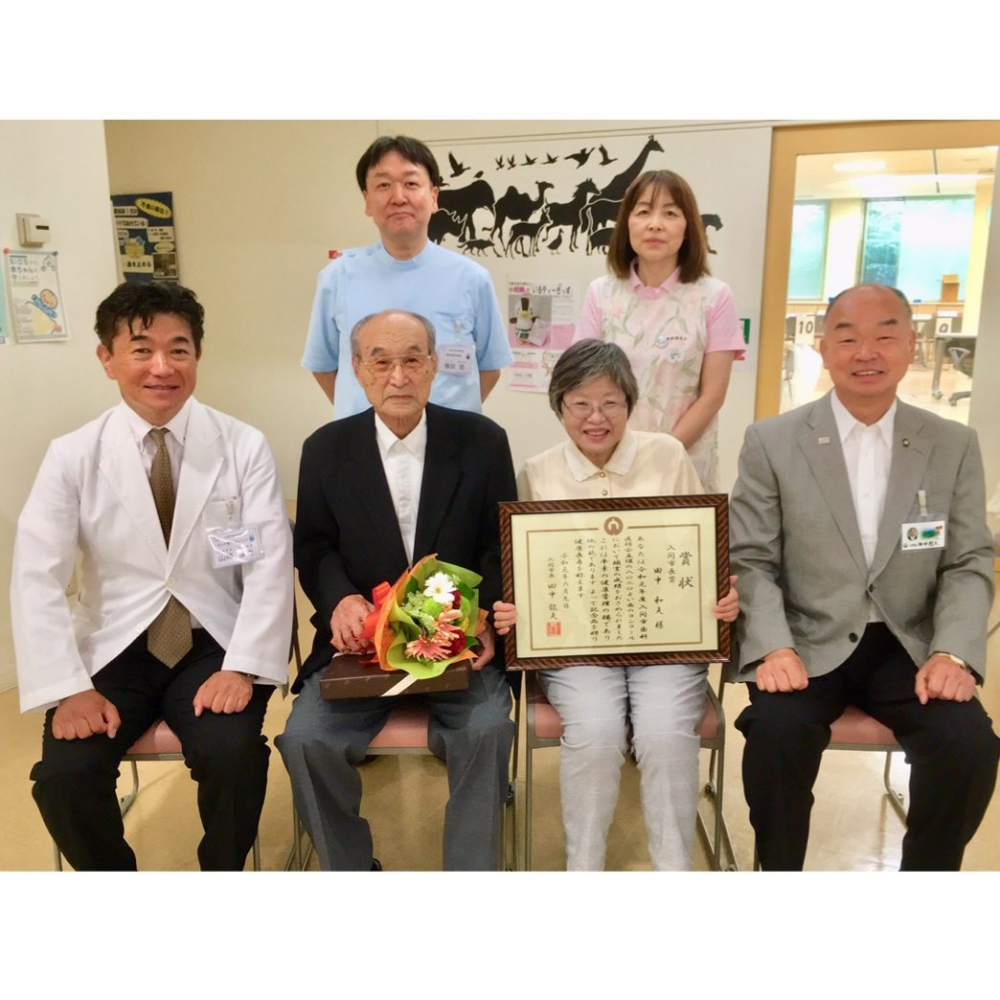 開場前に、8020よい歯のコンクール市長賞授与式が行われました。米寿を迎える残存歯29本の受賞者へ市長より賞状と歯科医師会会長より記念品が授与されました。