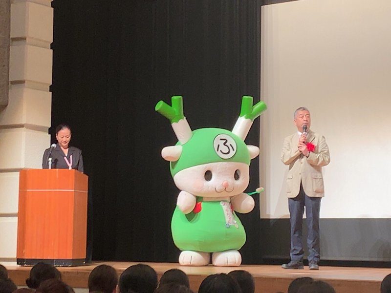 深谷市のイメージキャラクター「ふっかちゃん」も歯ブラシを手に登場し愛嬌をふりまいてステージを盛り上げてくれました。