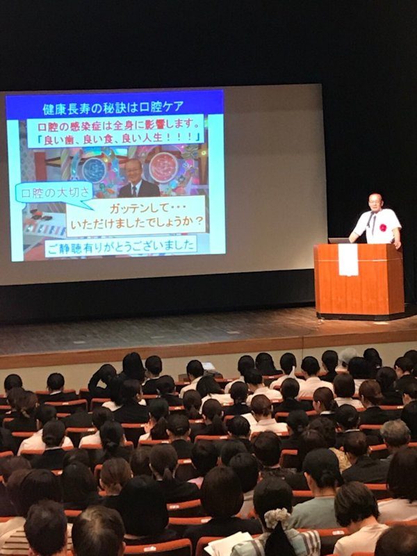 本年度の県民フォーラムは新一万円札の「顔」となる渋沢栄一の生誕地・深谷市で開催されました。県民の皆さま、地元の歯科衛生士学校の学生など大勢の方々にご来場いただきました。大久保喜惠子会長の挨拶後、埼玉県歯科衛生士会発展のため貢献された3名の会員の表彰を行いました。