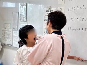 この日は、フロスの使い方も練習しましたが、少し難しそうな様子も見られました。今後ご家庭でも継続して使ってもらえると安心です。