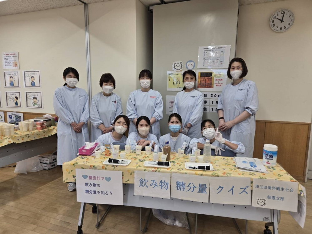 歯科保健指導 フッ化物洗口 糖度計を使用した飲み物クイズなどのコーナーを設け 来場者の方々に歯の大切さをお伝えすることが出来ました