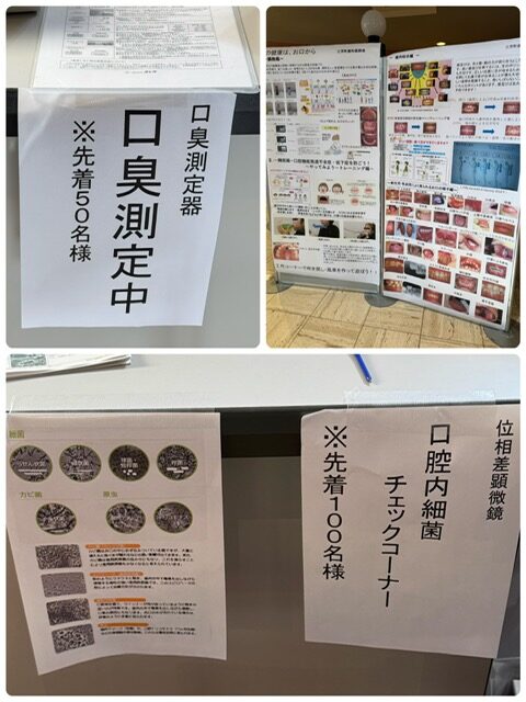 三芳町役場で行われた福祉まつり(主催:三芳町福祉まつり実行委員会、後援:三芳町・三芳町教育委員会)に三芳町歯科医師会の先生方のお手伝いとして参加させていただきました。口臭測定器や位相差顕微鏡でご自分のお口の現状を知っていただくこと、風車や吹き戻しを利用者の方々と作成し、遊びながら日常生活の中でお口の周りの筋肉をいかにつかっているかなどをお伝えしました。