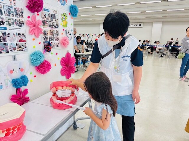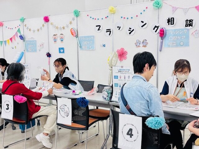 今年度は、歯科衛生士会のブースが「ブラッシング相談」から「お口の機能相談」へと自然に誘導される配置となり、より多くの来場者が立ち寄りやすい導線設計が工夫されていました。