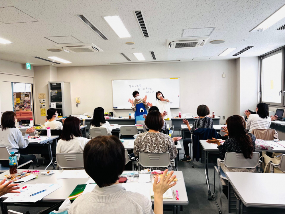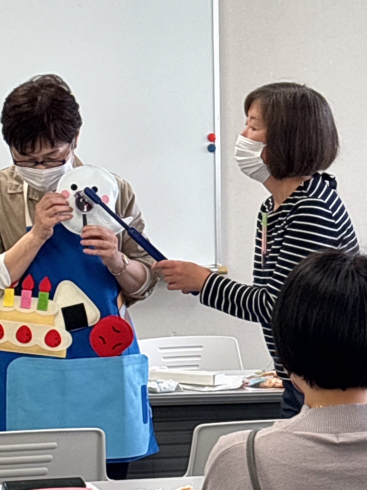 またこの日は、今年度から新たに導入することとなったエプロンシアターのデモンストレーションも実施されました。演じ方や展開の工夫、ラストのまとめ方についても活発に意見を交わし、和やかな雰囲気の中でストーリーをより魅力的に伝える工夫をみんなで考える時間となりました。
