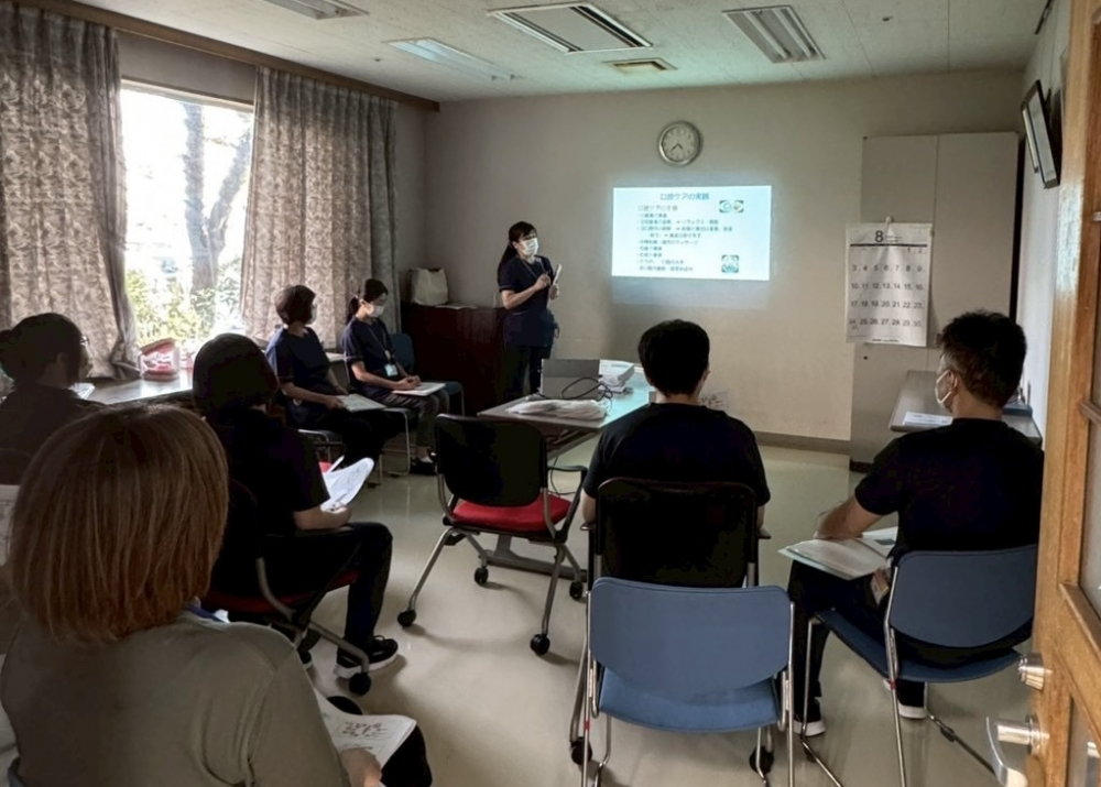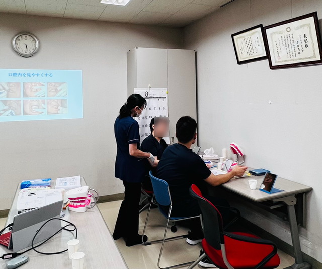 令和7年8月21日、埼玉県歯科衛生士会大宮支部は、介護老人福祉施設「春陽苑」にてスタッフの皆さまを対象とした口腔ケア研修会を実施しました。