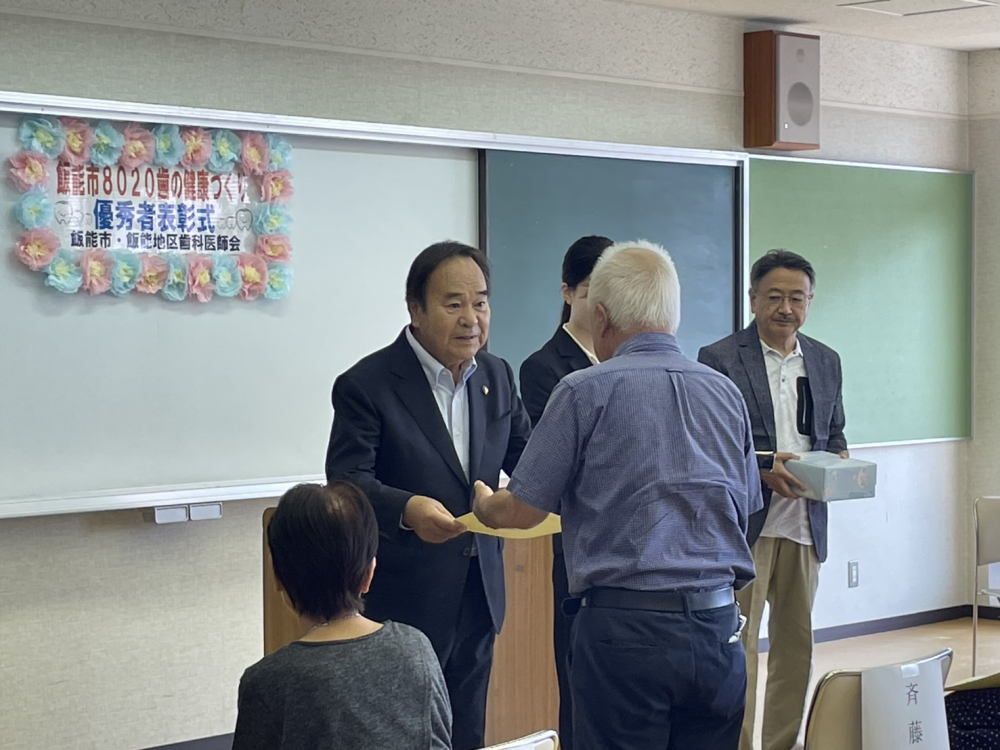 歯科のブースでは、はじめに「飯能市8020歯の健康づくり優秀者表彰式」がありました。