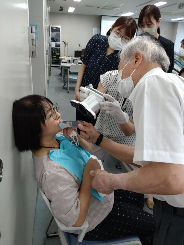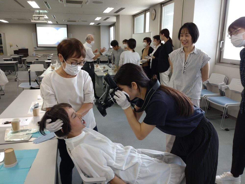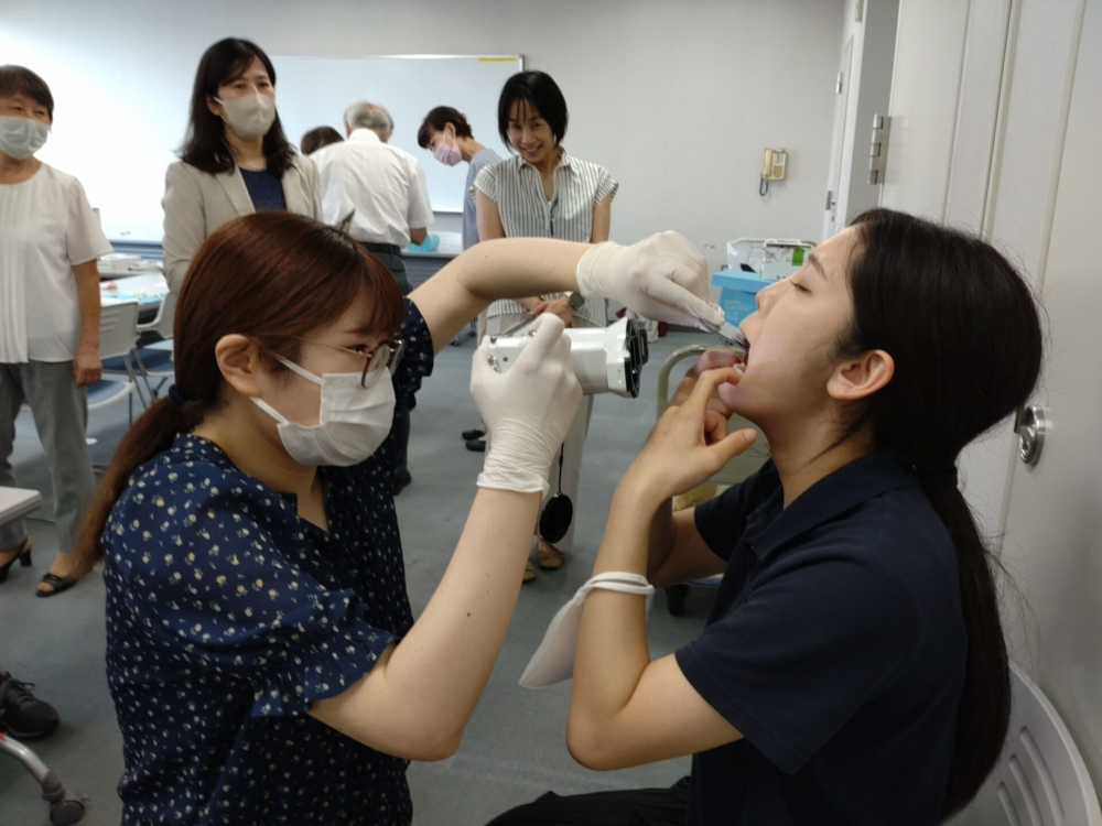 3班に分かれての実習は、口角鉤の装着方法、カメラの持ち方、患者さんの姿勢など先生のアドバイスを聞きながら撮影し画像の確認を行いました。相互実習により術者側と患者側双方の視点に立ち撮影のコツを掴むことができました。和やかな雰囲気のなかにも積極的な質問や助言し合う場面が多くみられ、活発で有意義な実習時間となりました。