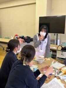 講話の他、歯ブラシ、スポンジブラシ、保湿剤等を使って実習を行ないました。