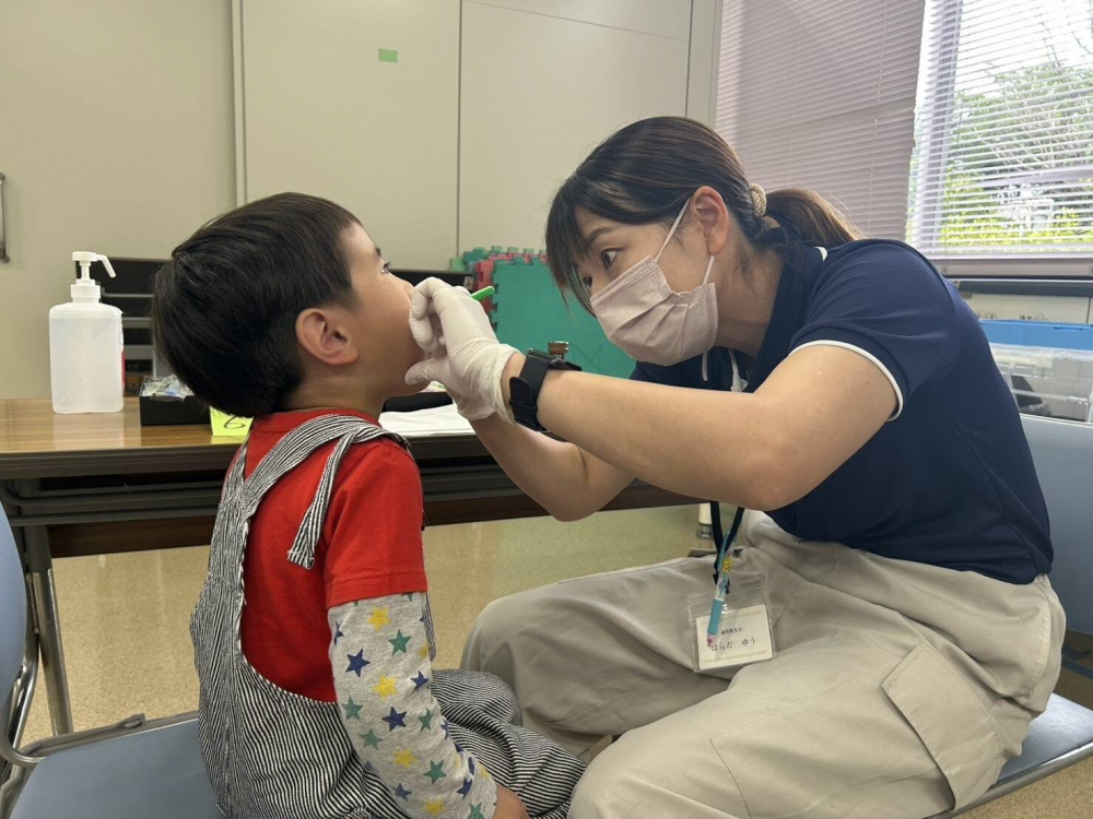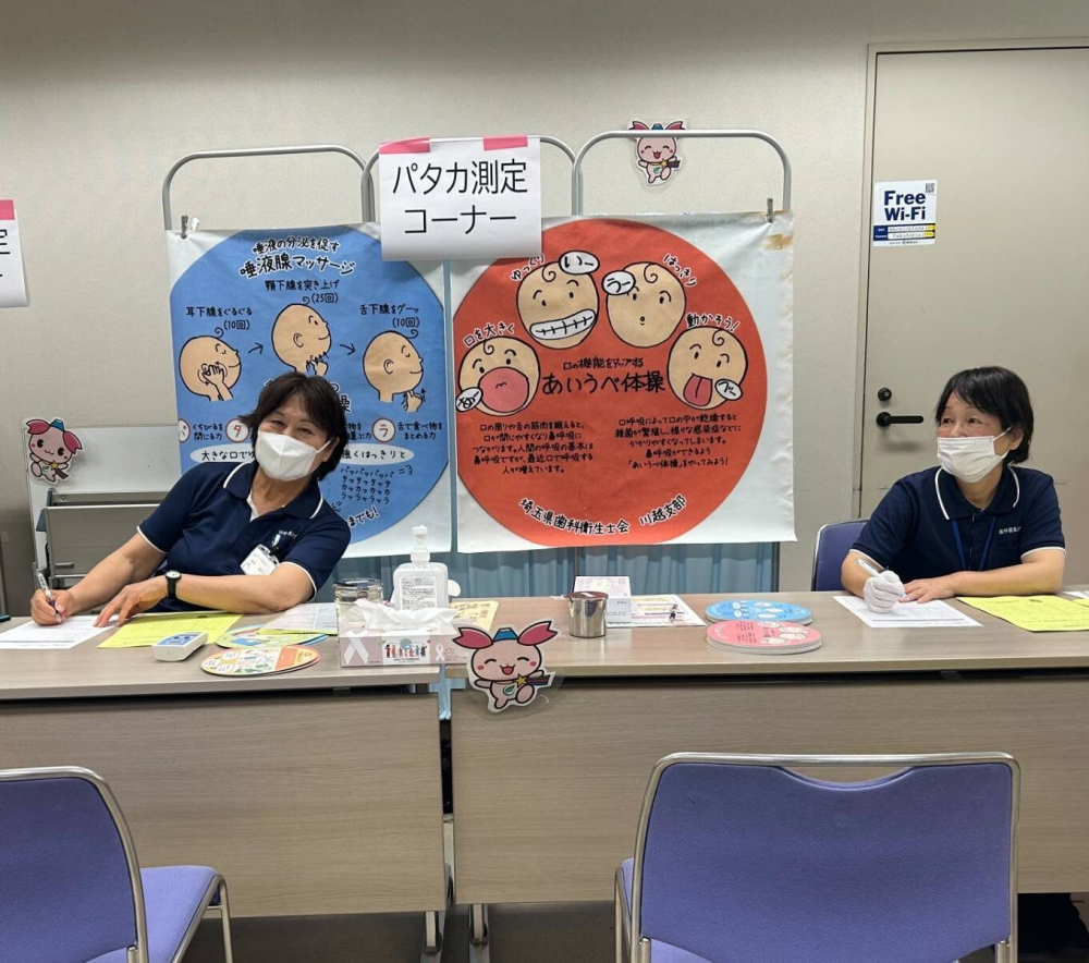 歯科衛生士会では、歯磨き指導、フッ化物塗布、パタカ測定のコーナーを担当しました。
