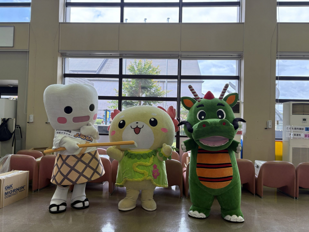 また、鶴ヶ島市と坂戸市のイメージキャラクターの「つるゴン」「さかろん」、日本歯科医師会のキャラクター「よ防さん」とも触れ合うことができるフォトスポットもあり、たくさんの方が写真を撮られていました。