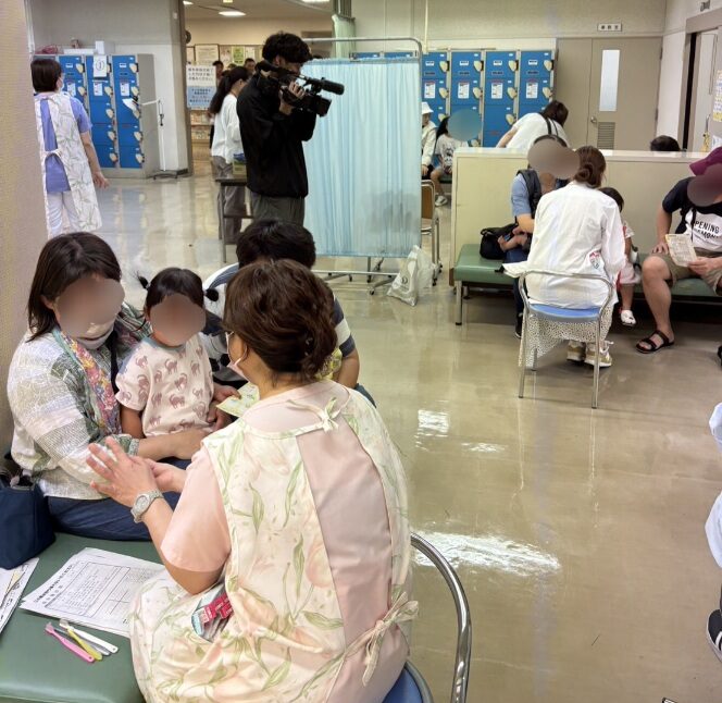 歯磨き指導は模型上で行い、フッ化物塗布は1歳以上小学生以下を対象に行いました。