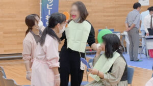 「歯ッピーわらび」では、歯科相談・RDテスト・口腔機能測定・指の石膏模型製作・エプロンシアター・風船コーナー・染め出し・ブラッシング指導・フッ化物塗布などが行われ、盛り沢山の内容に賑わっていました。