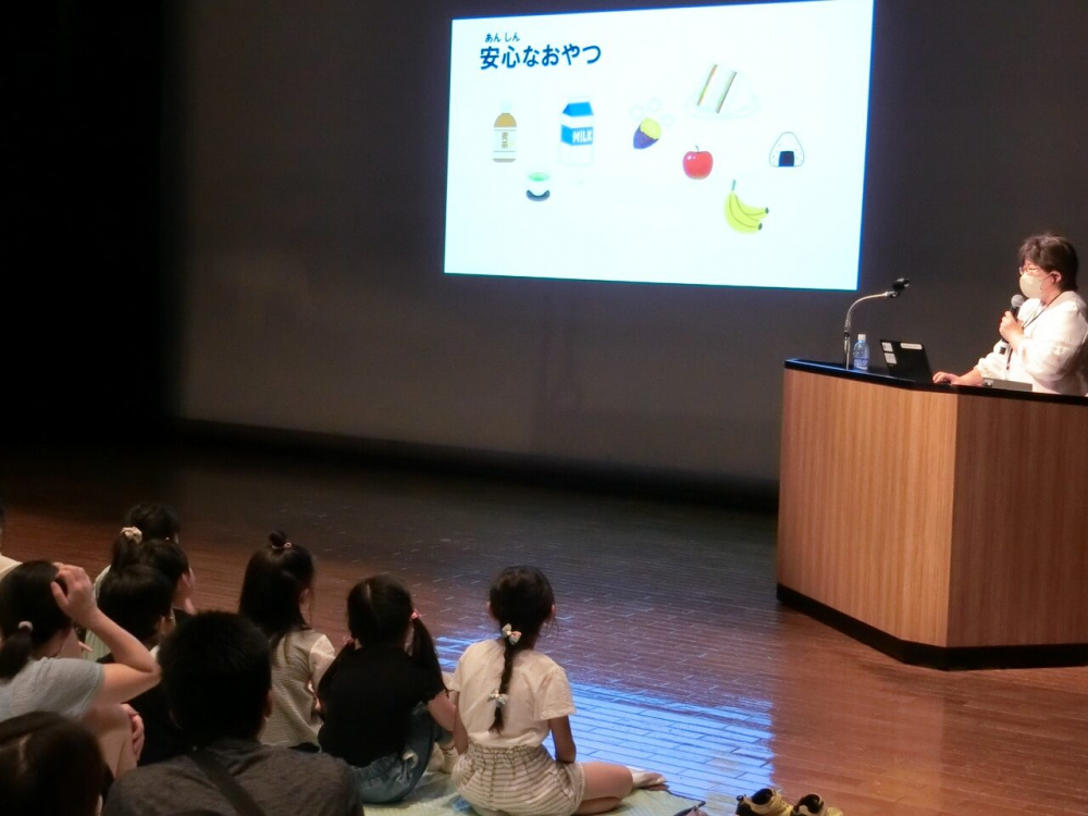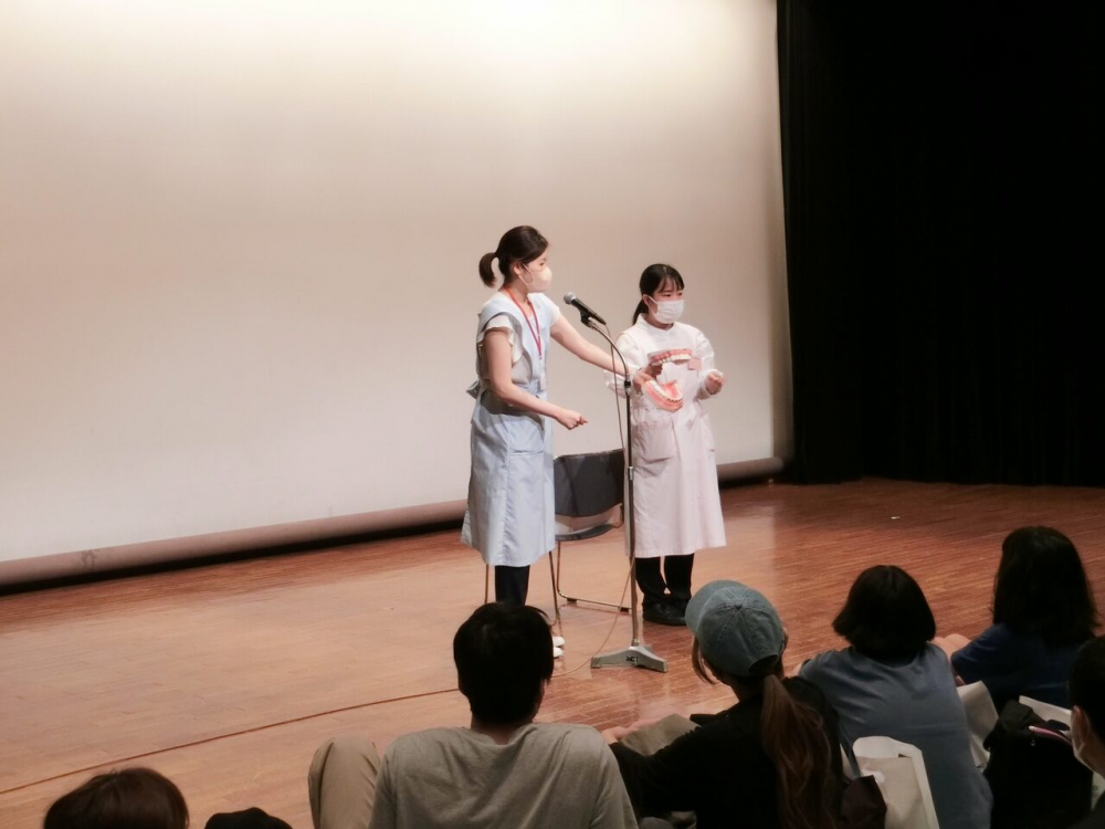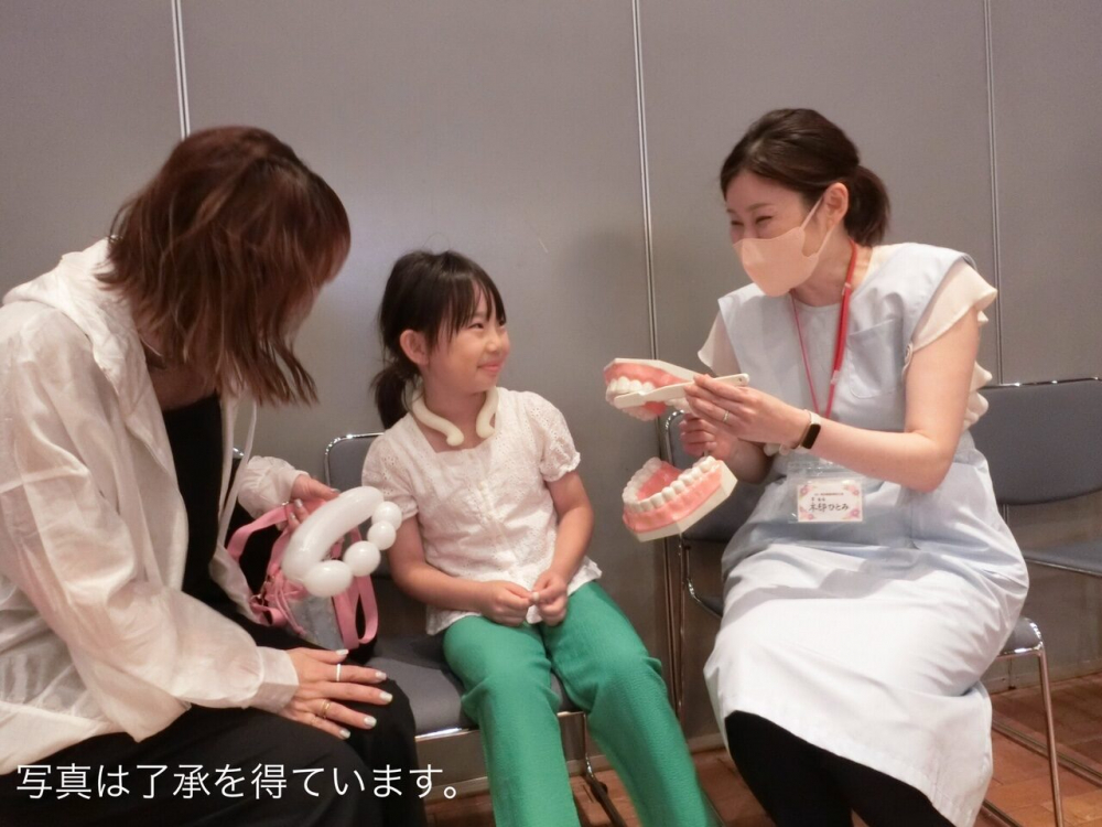 歯科衛生士担当コーナーも大きく変わり、顎模型や媒体などの視覚教材を多く取り入れた指導の実施、また、子ども向けに「子どものむし歯予防」についてスライドでの講和を行いました。皆さんとても熱心に聞いてくださいました。