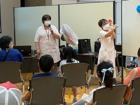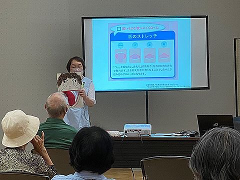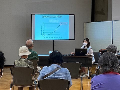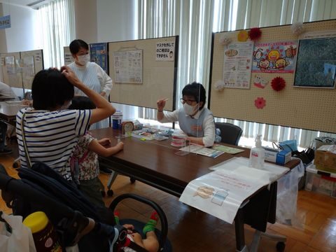 3年ぶりのイベント開催になります。新型コロナウイルス感染症拡大防止対策を行うとともに、例年の内容やコーナーを縮小して実施されました。歯科衛生士コーナーも大きく変わり、大人と子どもへの講話及びアクリル板越しの個別歯磨き相談になりました。大人への講話では「いきいきとした暮らしは元気なお口から~オーラルフレイルを知る~」をテーマにオーラルフレイルのサインや予防法について話をしました。50名の参加者皆さんとても熱心に聞いてくださいました。舌のストレッチ運動ではマスクの内で一緒に動かしてくださっている様子が伺えました。子どもへの講話ではむし歯予防を中心に話をしました。24名の参加でした。