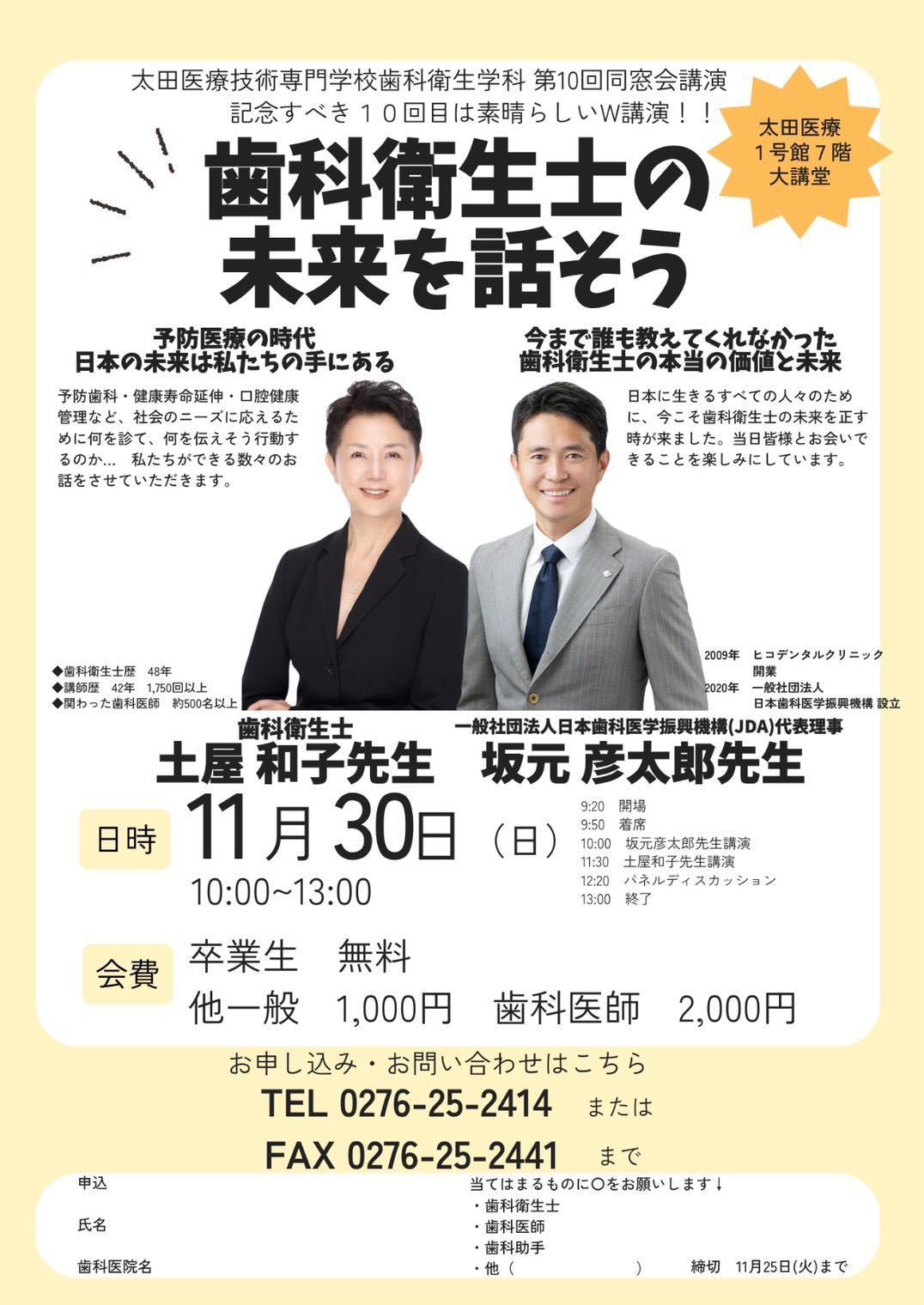 【外部講演会】太田医療技術専門学校歯科衛生学科第10回同窓会講演会